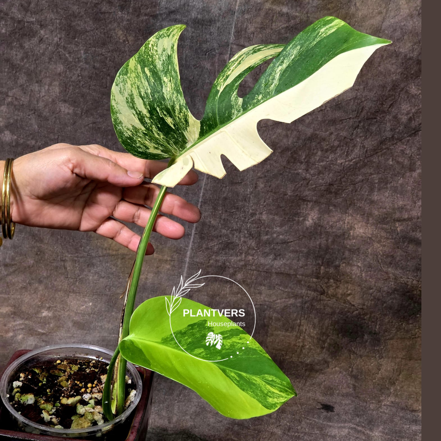 Allow the top inch or two of the soil to dry out before watering. Water thoroughly when you do water, ensuring that excess water can drain away. Variegated Monsteras prefer slightly drier conditions compared to consistently moist soil.