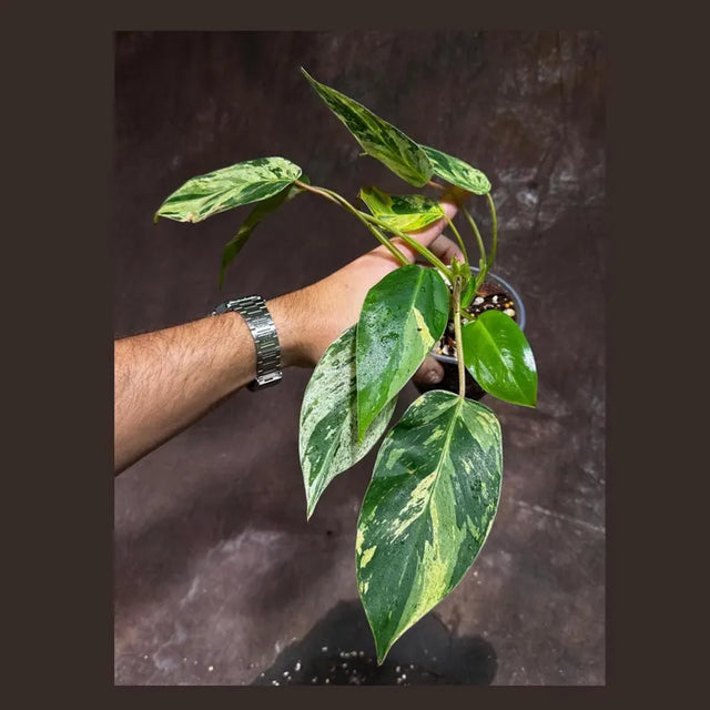 Add a touch of rare tropical beauty to your indoor jungle with the Philodendron Emerald Queen Variegated. This stunning cultivar features bold, oversized foliage with unique splashes and marbling of creamy white, lime, and emerald green. A must-have for any aroid collector, this plant is not only a conversation starter but also an easy-care companion for your home or office.